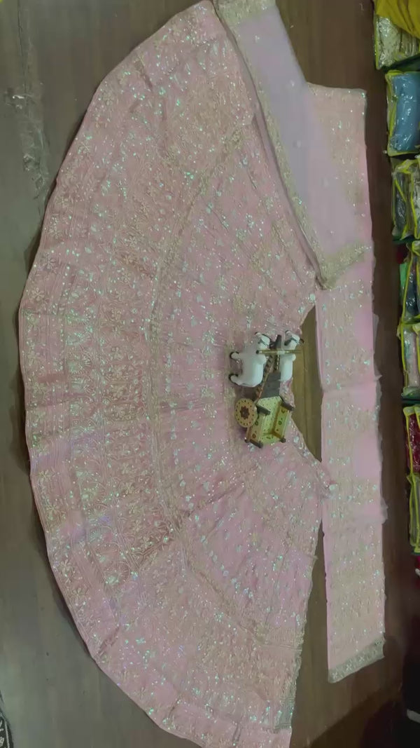 👉*Lehenga work-Sequins Embroidery Work With Cancan & Canvas Patta*